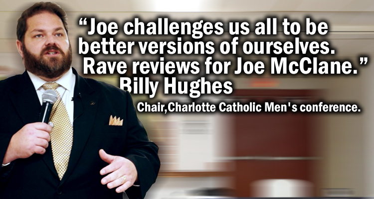 “Joe McClane is a very Godly man who gets to root of problems us men face in our daily spiritually battle! I thank God for allowing our paths to cross at The San Antonio Catholic Men’s Conference in 2013!! Joe tackles the tough issues head on and does not hold back… something most of us men need!! If you haven’t had the opportunity to hear Joe speak… you are in for a treat when you do!!!”