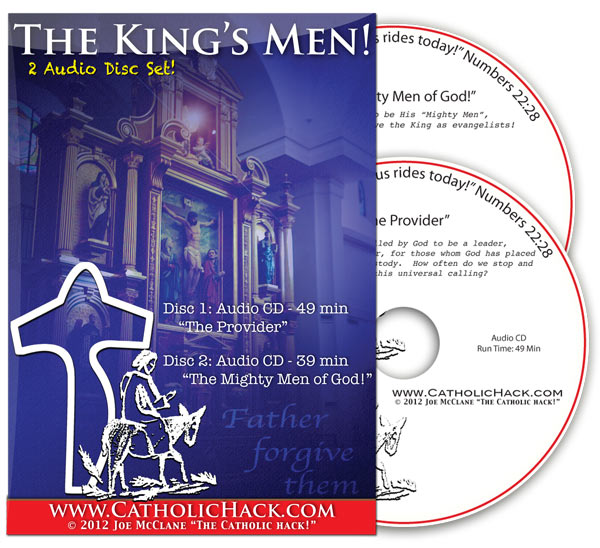 Audio CD – 39 min. – “Mighty Men of God!” Our mission is to serve the King as evangelists, and to be witnesses to a culture so opposed to our faith. More than just a “personal” relationship, the King of creation has poured out His life for each of us, setting us apart from all others, so that we may be used to bring back all of His other children into the one, holy, Catholic and apostolic Church. We are called to be His “Mighty Men,” may God give us the grace to see it through.